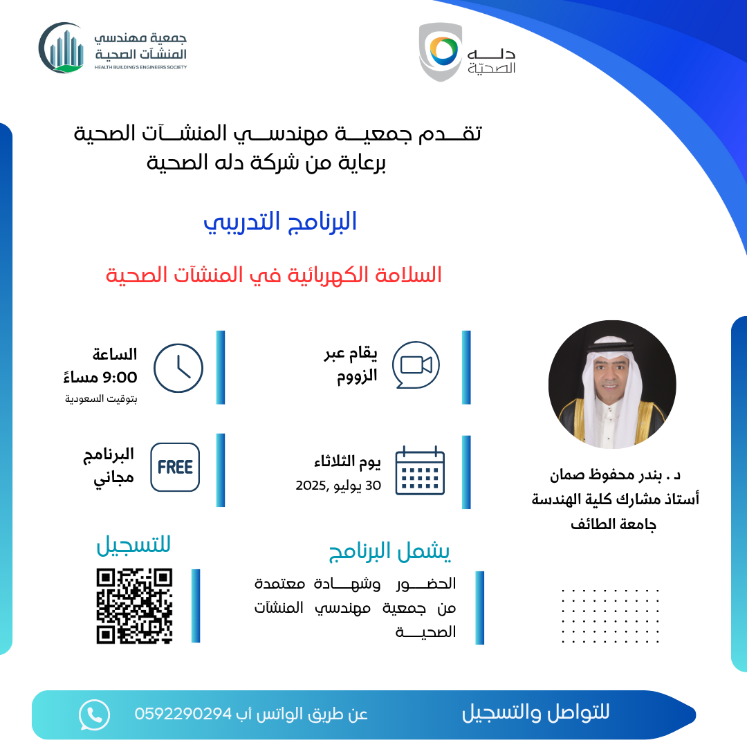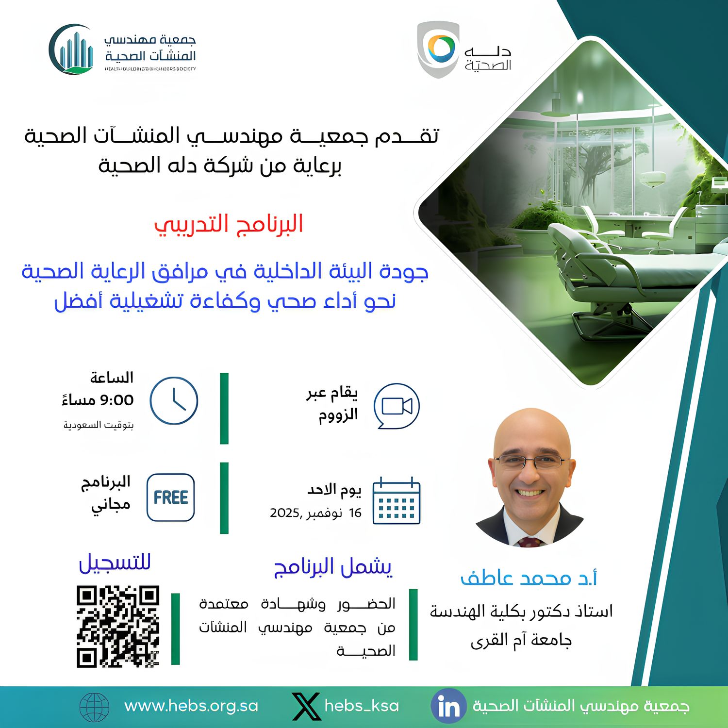 تقدم جمعية مهندسي المنشآت الصحية برعاية كريمة مع شركة دله الصحية البرنامج التدريبي اساسيات ت...