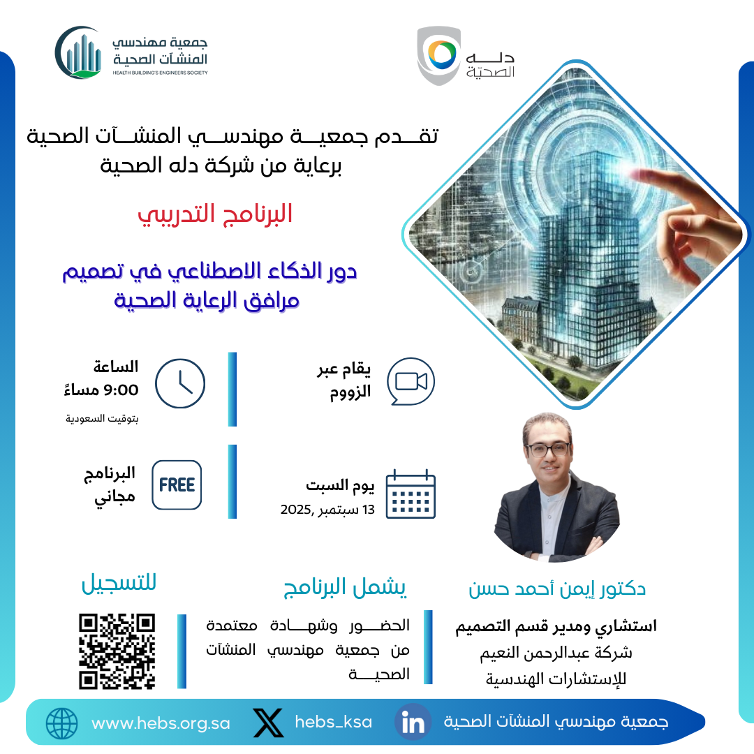 البرنامج التدريب تطبيقات الذكاء الاصطناعي في التصميم المعماري للمنشآت الصحية